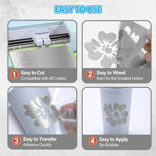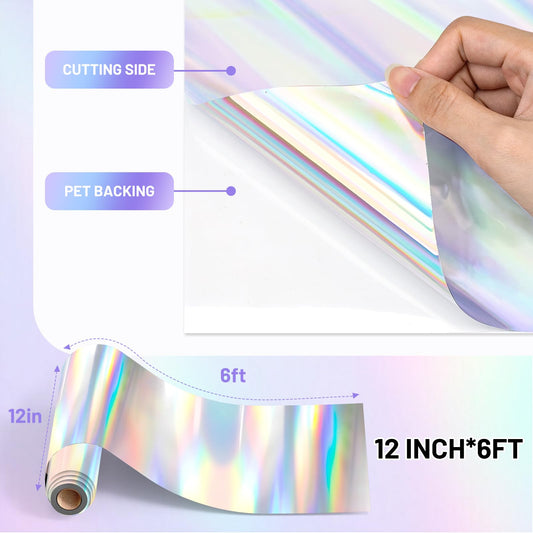 Holographic Vinyl Permanent Vinyl for Cricut, 12'' x 6 FT Silver Impervious Iridescent Adhesive Vinyl Roll for All Cutting Machine, Silhouette, Cameo Cutter, Home Outdoor Decor, Decal, Sticker