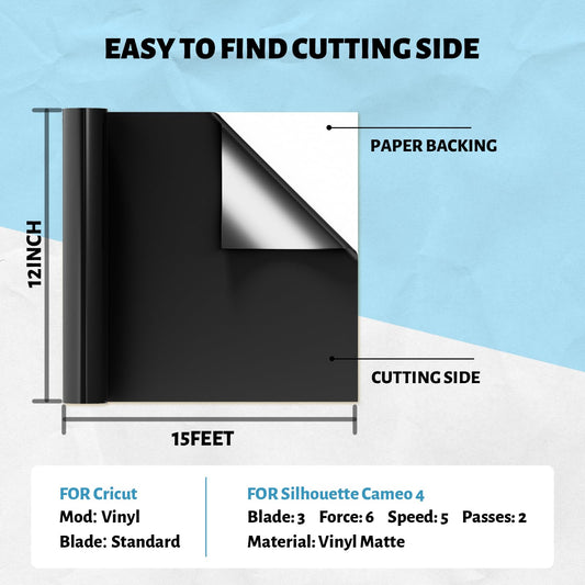12'' x 15FT Black Permanent Vinyl, Black Vinyl for Cricut, Black Adhesive Vinyl Impervious Glossy Roll for All Cutting Machine, Silhouette, Cameo Cutters, Home Outdoor Decal,Sticker