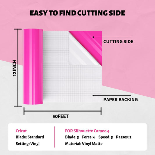 12'' x 50 FT Gloss Pink Permanent Vinyl Roll for Cricut Silhouette, Pink Adhesive Vinyl for All Cutting Machine, Impervious Outdoor Pink Vinyl, Car Decal Cup Sticker DIY Craft Decor
