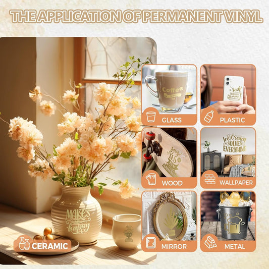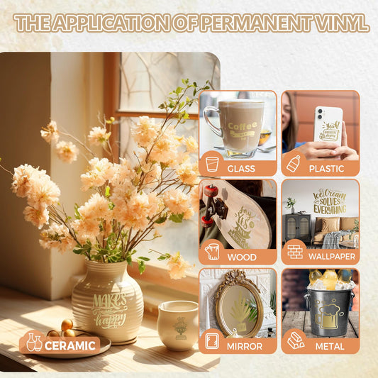 Gold Permanent Vinyl, 12'' x 15FT Gold Vinyl Roll for All Cutting Machine, Outdoor Permanent Vinyl for Decor Sticker, Scrapbooking, Signs, DIY, Waterproofed